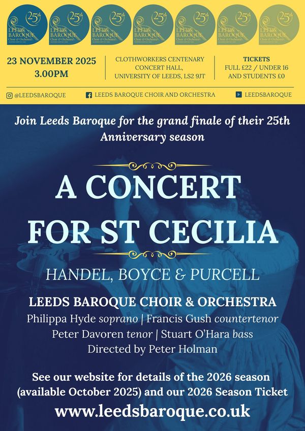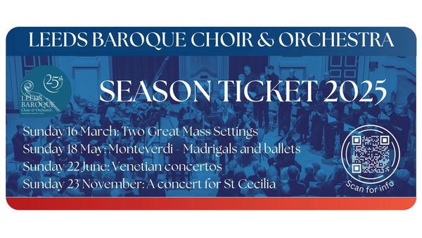 The box office has a new Category of tickets - Introducing… This entitles two adults to attend the concert for a discounted price of £35 as long as one of them has not attended a Leeds Baroque concert before. Tickets for students and young people are free - so we would be delighted for you to entice them to a concert too.